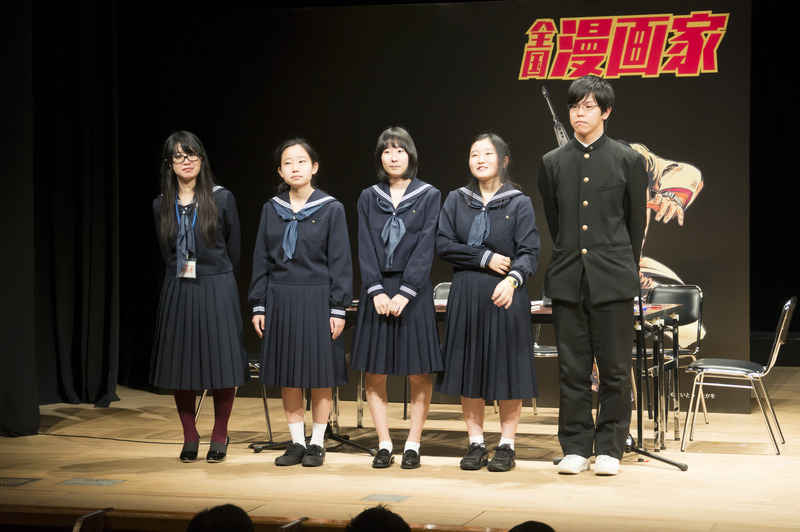 チームの1つ目は、まんが甲子園レギュラー審査員でもある、ひのもとめぐる先生率いる「花の高校生チーム」。第23回まんが甲子園準優勝校である高知商業高校の4人の高校生を率いての参戦です。