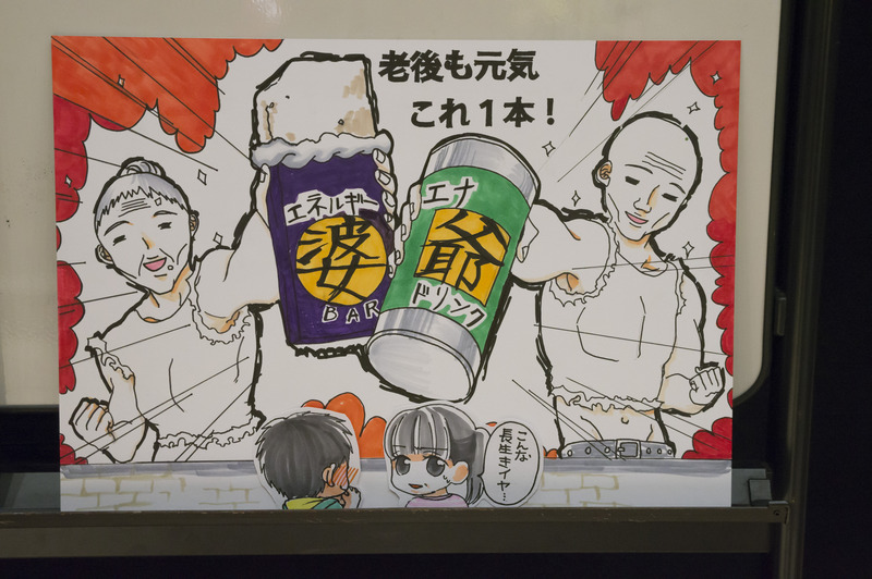 「花の高校生チーム」の作品は、『エナジー』という言葉を『エナ爺』と変換するアイデアから生まれた作品。さすが、高校生の頭の柔らかさです。