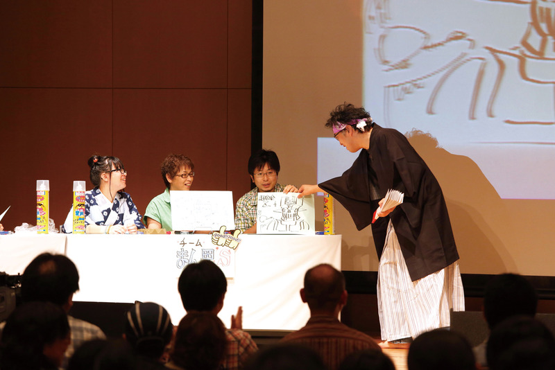 審査員のMoo.念平先生によるまんが大喜利。他の審査員の先生方も参加し、大変盛り上がりました。