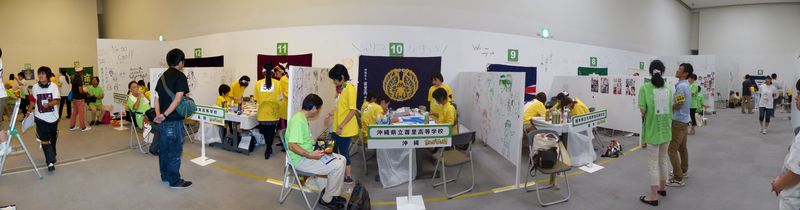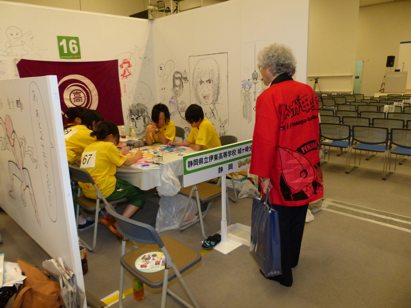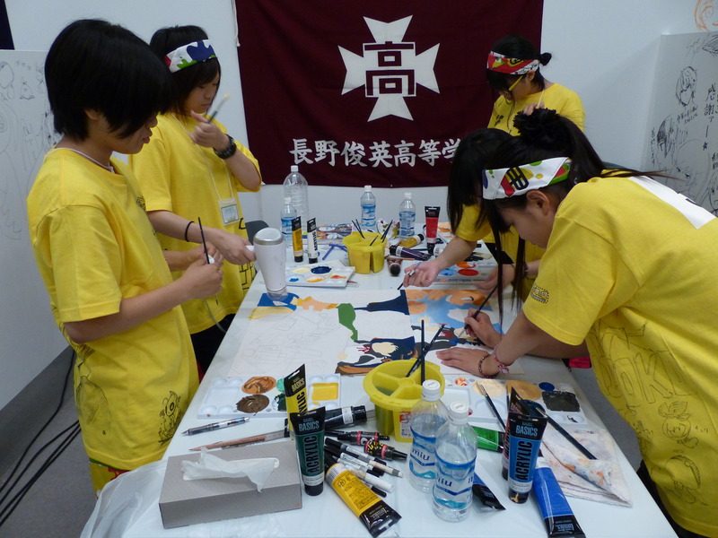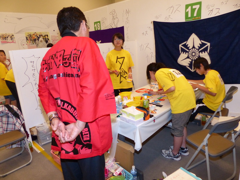 選手の皆さんは、各校のブースに戻り、テーマである「○○家」のアイデア出しを行い、まんがを描き始めています。