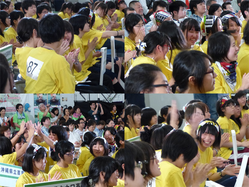 自分の学校名が読み上げられた選手たちは、諸手を上げて喜んだり、メンバーでハイタッチをしたり、体中で一次競技通過を喜んでいました。
