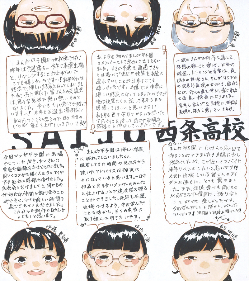 ホーム > 王国の賢人 > まんが甲子園予選審査会 審査員の先生方の講評 > 第24回まんが甲子園予選審査会 審査員の先生方の講評 > 第25回まんが甲子園予選審査会 審査員の先生方の講評 > 【甲子園】第26回 まんが甲子園予選審査会 審査員の先生方の講評 > 第27回まんが甲子園予選審査会 審査員の先生方の講評 > 第28回まんが甲子園予選審査会 審査員の先生方の講評 > 岩手県立杜陵高等学校(第28回まんが甲子園出場校紹介) > 宇都宮文星女子高等学校(第28回まんが甲子園出場校紹介) > 群馬県立吉井高等学校(第28回まんが甲子園出場校紹介) > 山村学園高等学校(第28回まんが甲子園出場校紹介) > 新潟県立村上中等教育学校(第28回まんが甲子園出場校紹介) > 多治見西高等学校(第28回まんが甲子園出場校紹介) > 愛知県立惟信高等学校(第28回まんが甲子園出場校紹介) > 司学館高等学校(第28回まんが甲子園出場校紹介) > 京都芸術高等学校(第28回まんが甲子園出場校紹介) > 京都精華学園高等学校(第28回まんが甲子園出場校紹介) > 学校法人呉武田学園武田高等学校(第28回まんが甲子園出場校紹介) > 香川県立善通寺第一高等学校(第28回まんが甲子園出場校紹介) > 愛媛県立西条高等学校(第28回まんが甲子園出場校紹介)