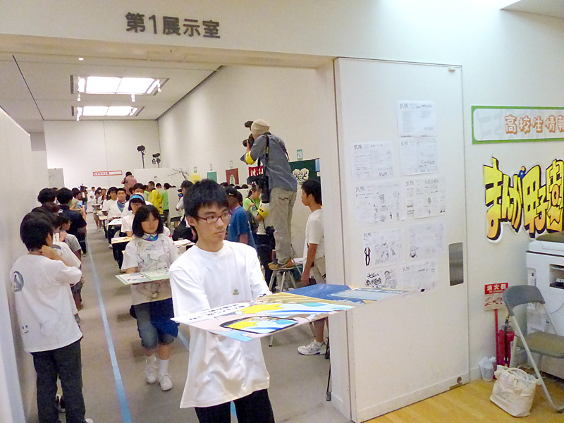 書き上げた作品は高校生スタッフの皆様で、審査会場に運ばれ、先生方が慎重に審査を進めています。