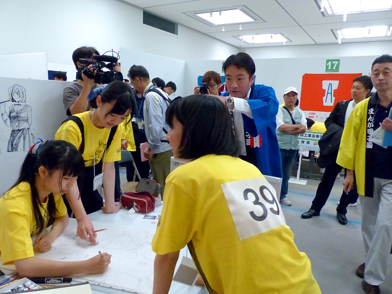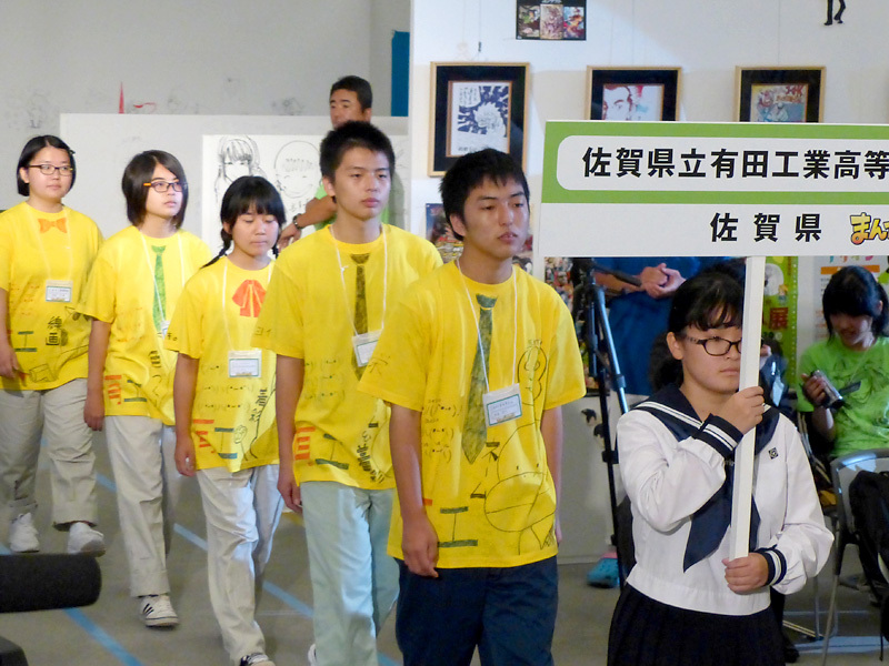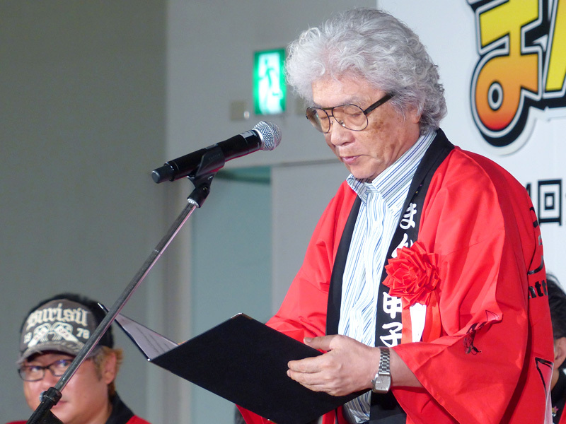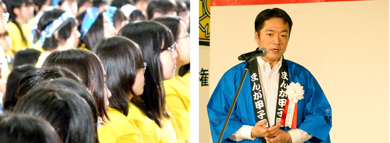 まんが甲子園の主催者である まんが王国・土佐推進協議会会長の尾崎正直高知県知事より、「全国の沢山の応募校から勝ち抜き、ようこそ高知へ!! これから二日間、全国一を目指して、チームワークでがんばってください。」と激励の挨拶がありました。