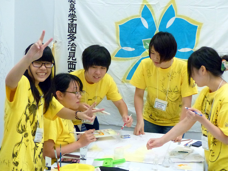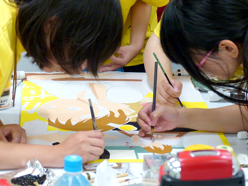 韓国から参加している「全南芸術高等学校」のみなさんも、チームワークが良く、作画がどんどん進んでいました!!
