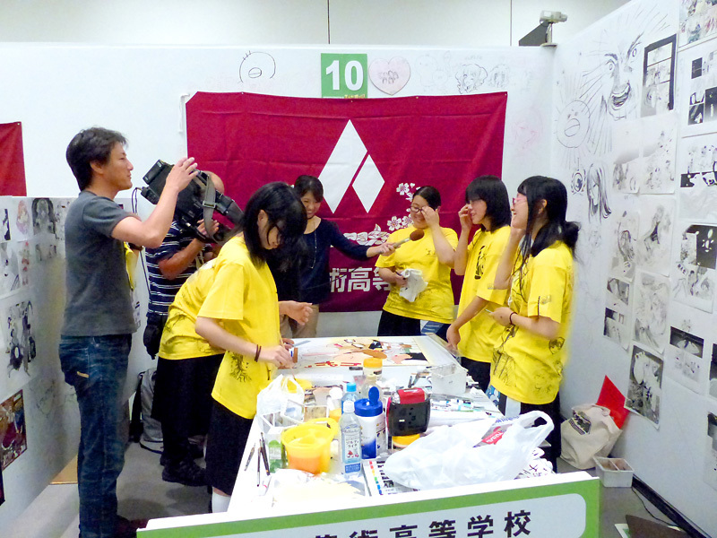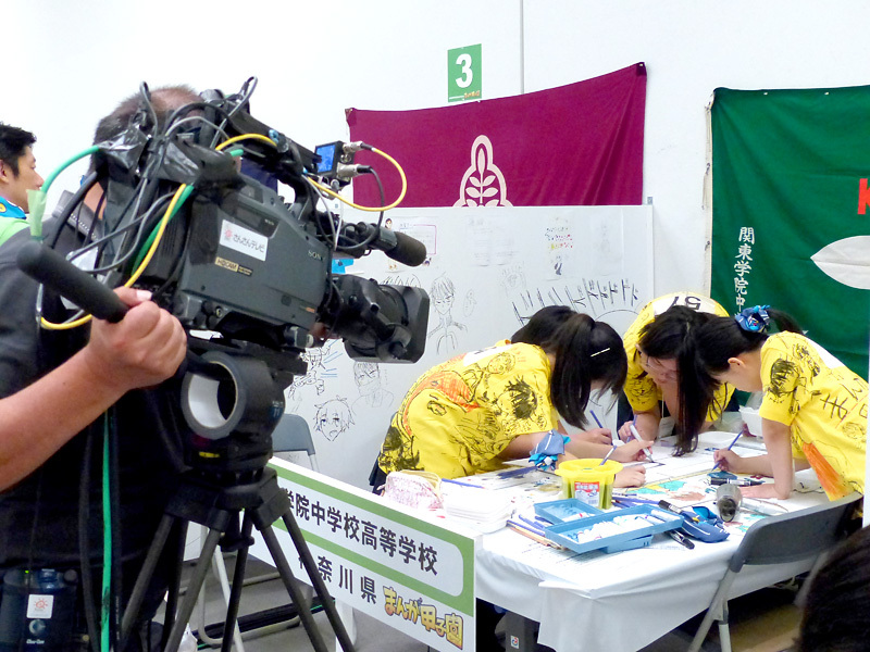 多くのテレビ局も取材に来て、ペン児たちにインタビューしたり、真剣に描画している所を撮影したりしていました。
