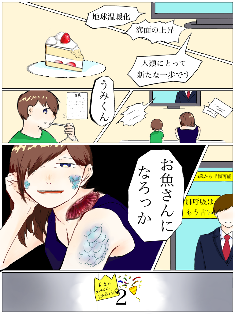 コロナネタを避けたところで、新しすぎる生活様式、まあ新しい人種にまでなってしまっているわけなんですけれども、もっていき方がなかなかうまくて、地球温暖化のための海面上昇と言いながら、「人類にとって新たな一歩です」といっているんです。あれっ?っと思うんです。それがこの人たちにとっては正しかったんだ、という完全に新しすぎる生活を果たしている作品かな、と僕のなかで、コロナ以外と、新しいテーマにも沿っているということで推したい作品となりました。運び方もうまいので、構成もやるな、という感じです。