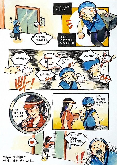 TVニュースを「新型コロナウイルス」「マスク」が占領する中、この作品は一枚漫画の魅力を最大限発揮して、初めての「まんが甲子園オンライン審査」のピンチを見事に救いました。