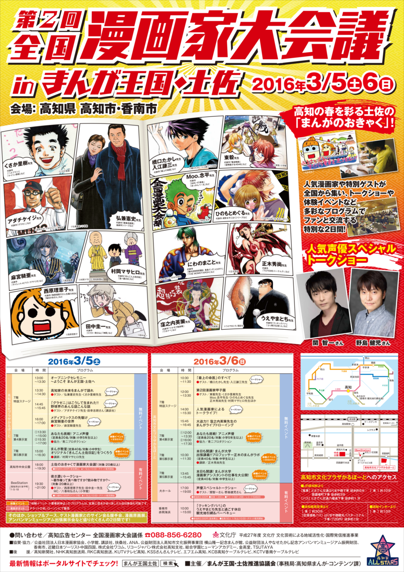 「全国漫画家大会議」は昨年2月に、第1回が高知市内で開催され大変に好評だったことから、継続していこうということになり、今年はその第2回目である。