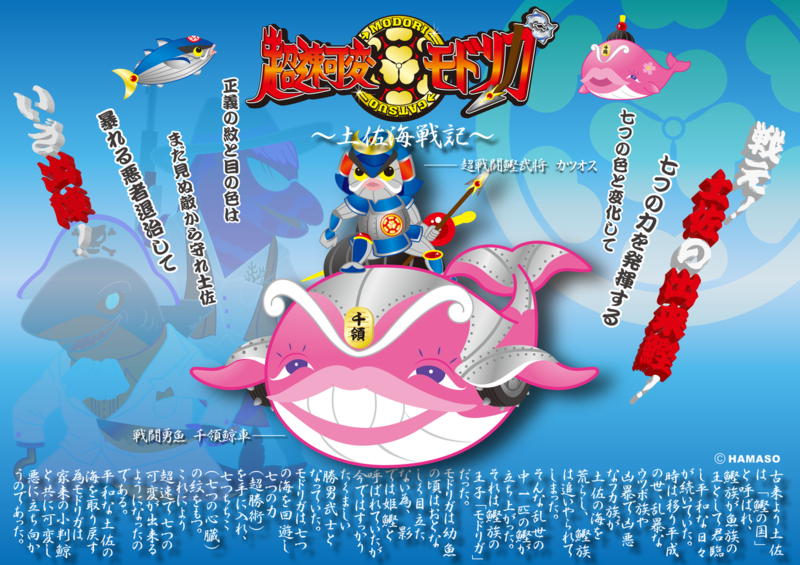 平和な土佐の海を取り戻す為モドリガは家来の小判鯨と共に可変し悪に立ち向かうのであった。