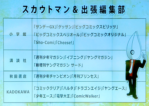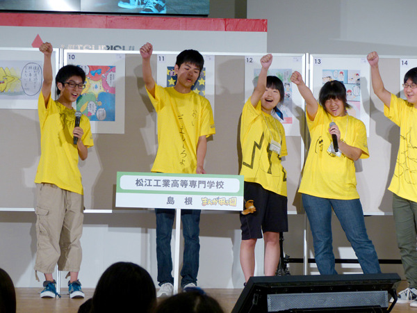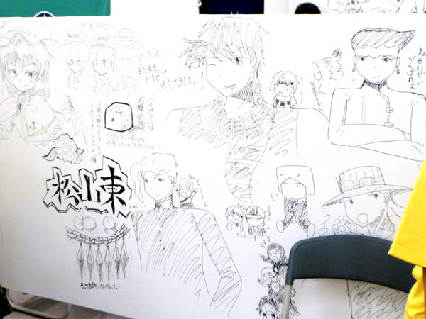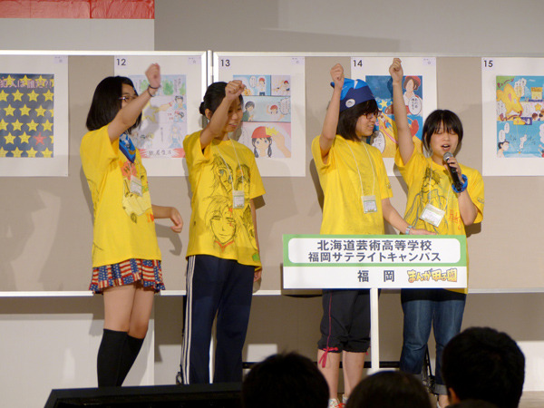 決勝戦の作品も完成し、審査の合間に出張編集部に参加してくださった各誌のスカウトマンが、作品持ち込みや競技中の生徒の描画力、ブースの壁に描かれた落書きなどを参考にして、今後育成していきたい生徒を選抜する「スカウトマン選抜生徒発表」が行われました。