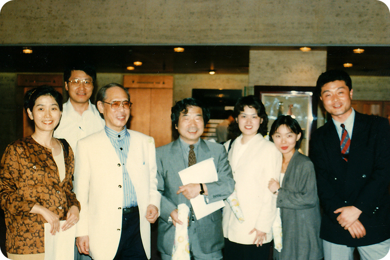 1997年、日本漫画家協会賞贈賞式会場にて。向かって左から3人目がやなせ先生、右端がおかもとさん。