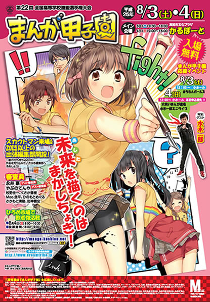 右)平成25年、第22回全国高等学校漫画選手権大会「まんが甲子園」のポスターを描いたのが華々つぼみ先生。