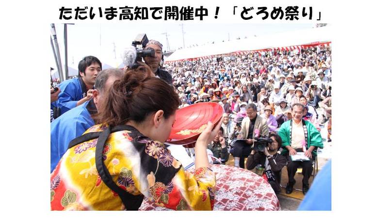 途中から応援団長の桑原みずきさんも加わって、「まんが的発想」で派生した高知の文化や取り組み、よさこい祭り、どろめ祭りなどを紹介し、会場に集まった方の大声援と、ニコニコ生放送を視聴する方から多くの応援コメントをいただきました。