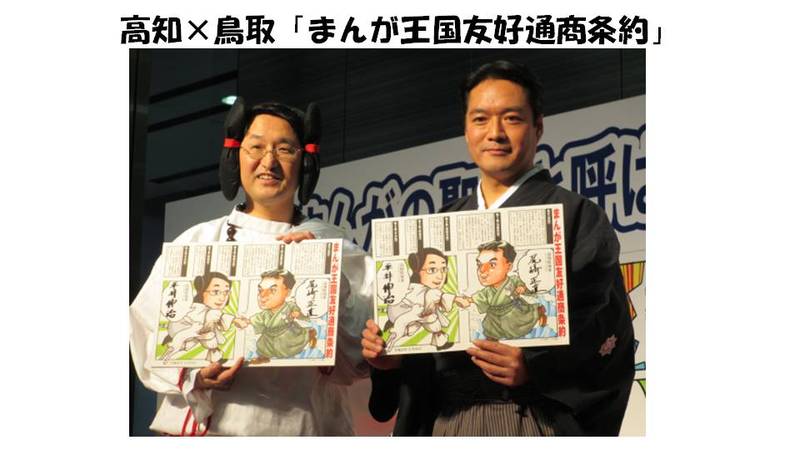 まず、「我こそはまんが王国」と言う達増拓也岩手県知事、平井伸治鳥取県知事と、「元祖まんが王国」としての威信をかけた尾崎正直高知県知事が登場。