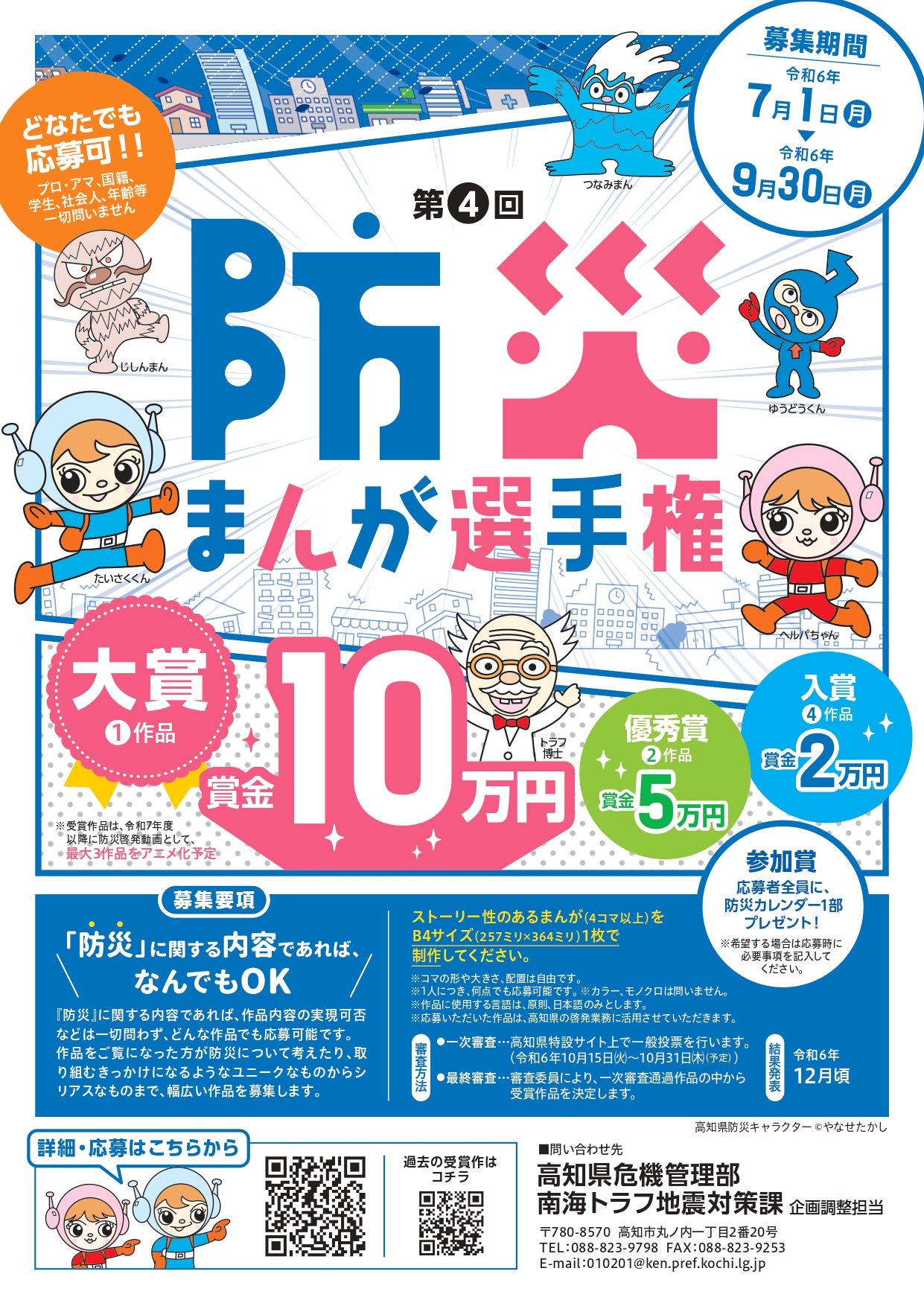 ※当コンテストの応募にあたり、高知県イメージキャラクター「くろしおくん」や高知県防災キャラクターなどは使用できません。