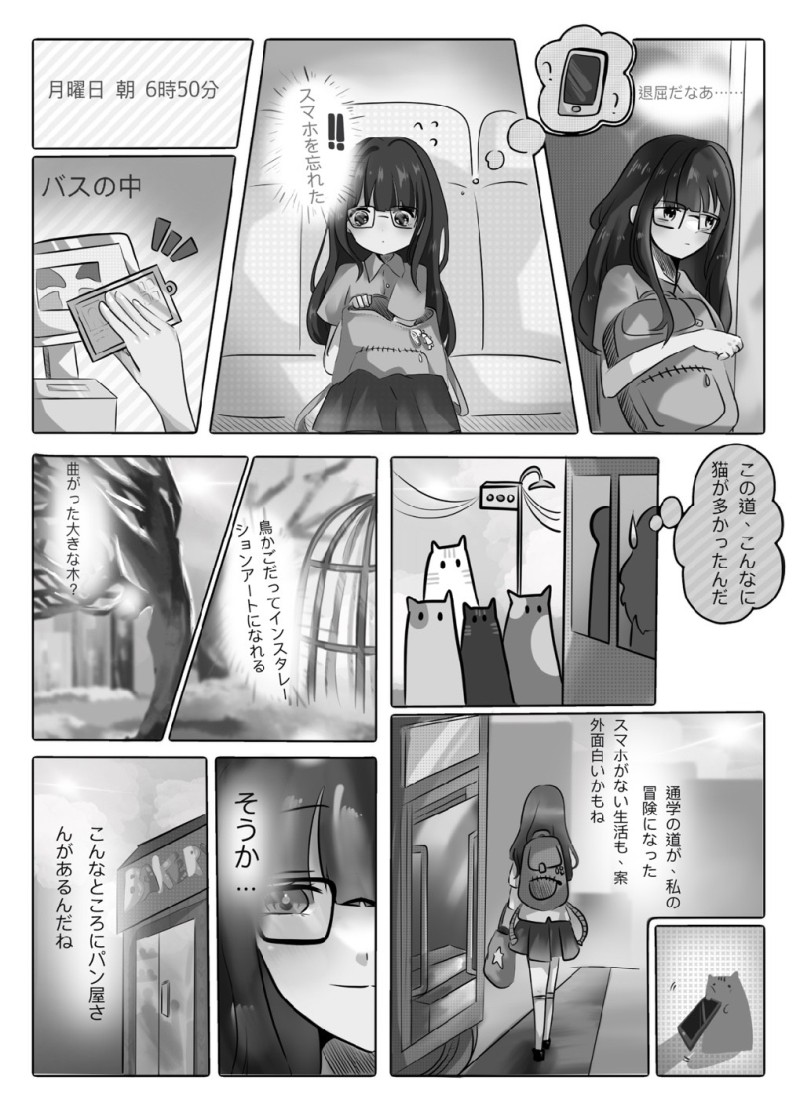タイトル:携帯電話を持たずに学校に行く途中