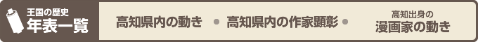 3月、「第6回全国漫画家大会議inまんが王国・土佐」が新型コロナウイルス感染症の影響により中止 4月、まんが王国・土佐情報発信拠点「高知まんがBASE」開設 |