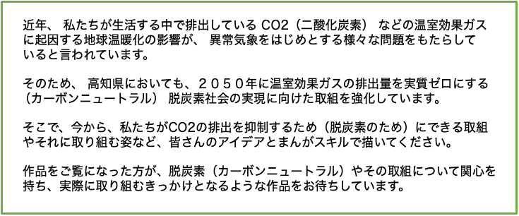 今から身近な取組として行えることを題材としたまんが作品を描いてご応募ください。