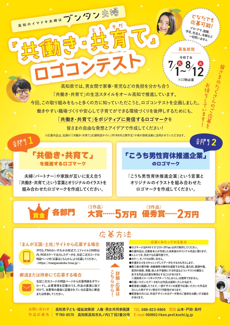 今回、この取組の啓発の一環として、「共働き・共育て」ロゴコンテストを開催いたします。