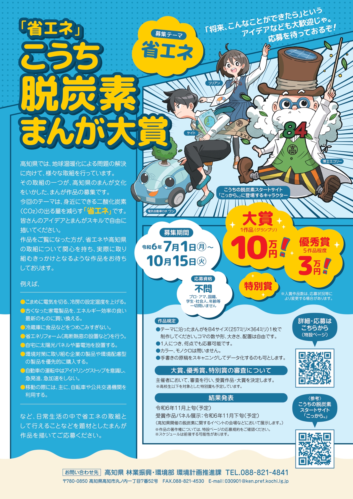 作品をご覧になった方が、省エネや高知県の取組について関心を持ち、実際に取り組むきっかけとなるような作品をお待ちしております。