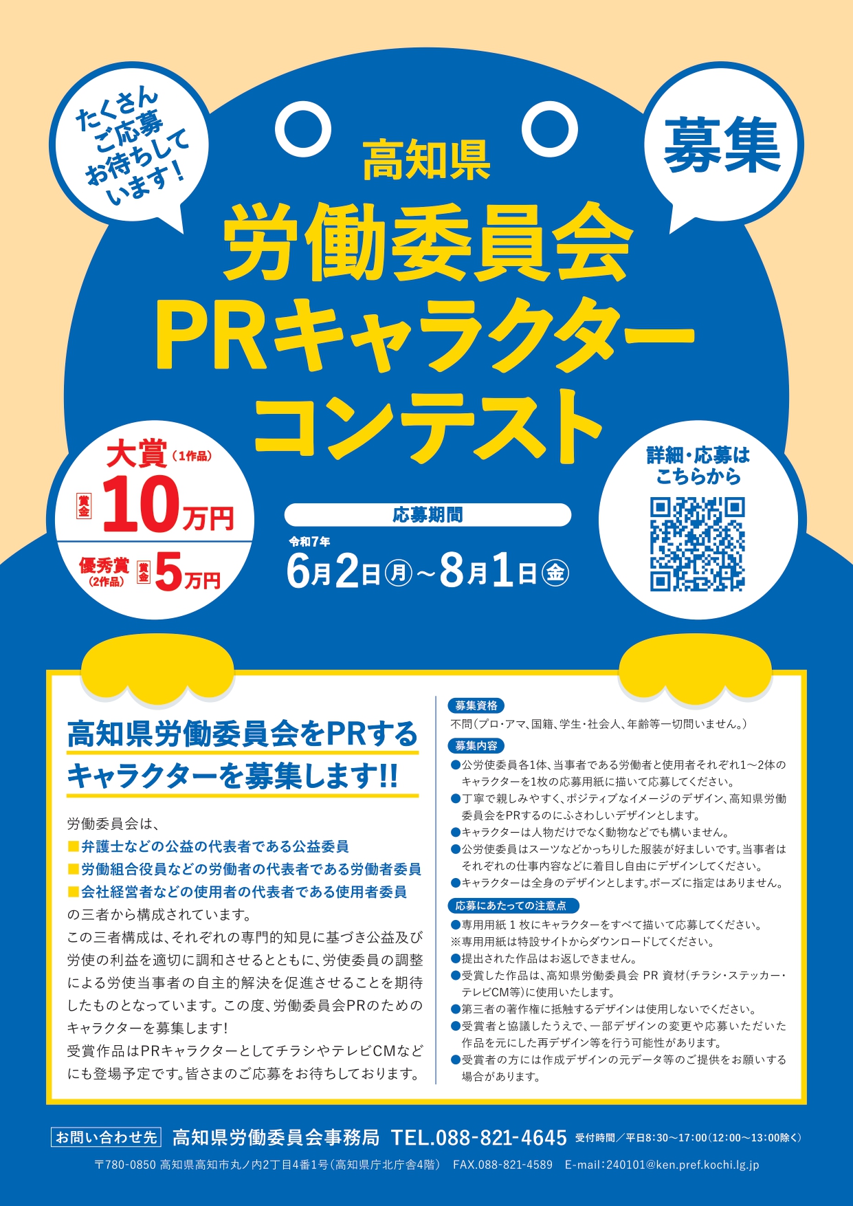 高知県労働委員会をPRするキャラクターを募集します。